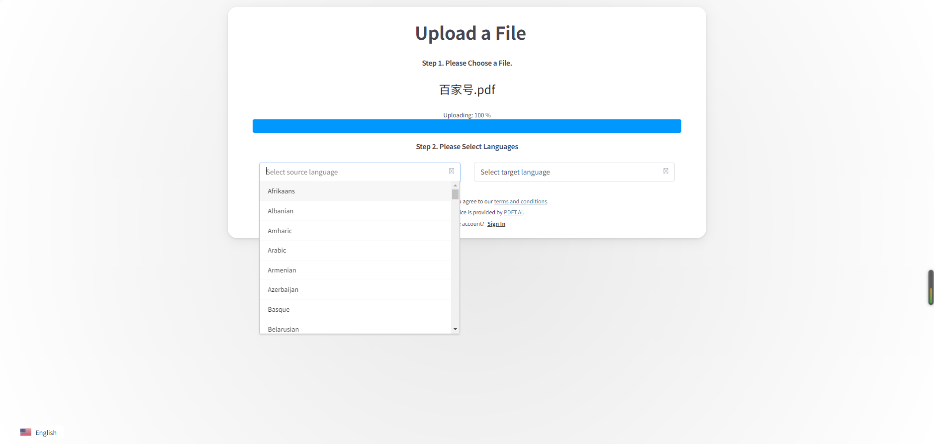 第一步,免费注册账号后,上传需要翻译的韩语PDF文件。