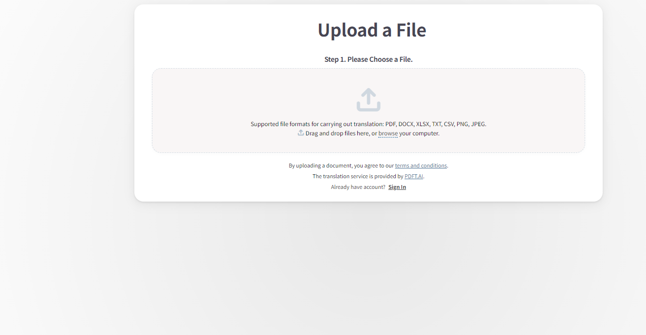 第一步,进入官网,把韩语PDF拖进上传窗口或点选文件上传。