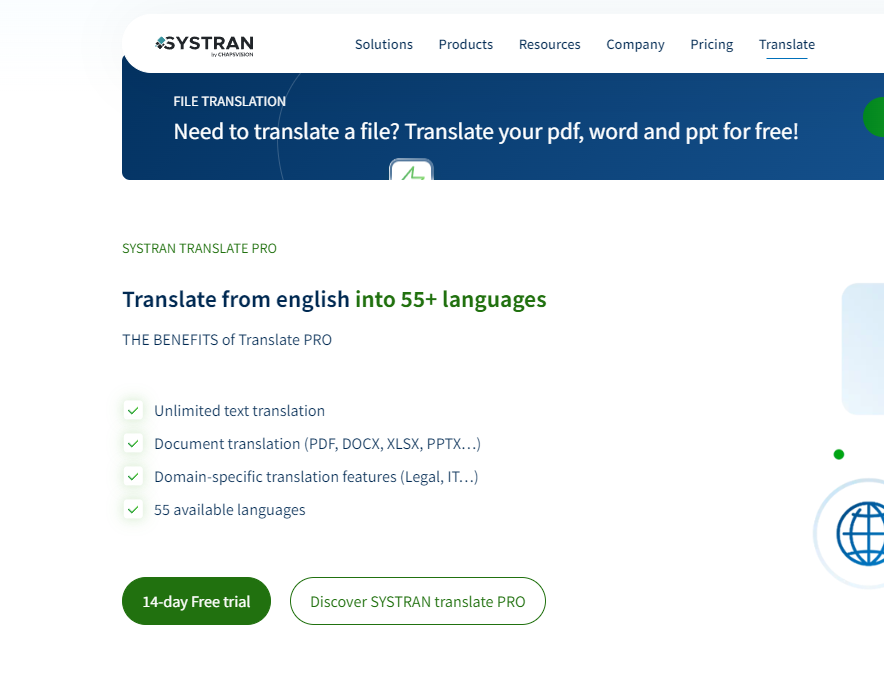 第一步,打开Systran Translate官网,进入“文档翻译”,上传PDF;