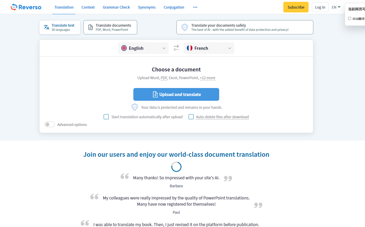 第一步,打开官网“文档翻译”板块,上传乌兹别克语PDF;