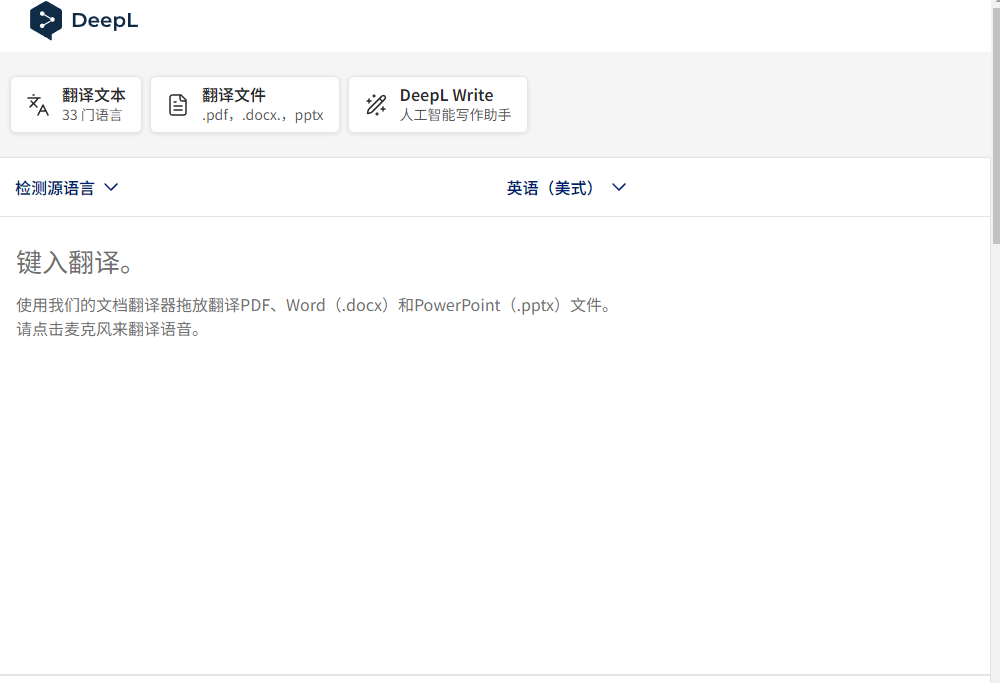 步骤一:在浏览器中打开deepl官方网站,进入文件翻译界面。